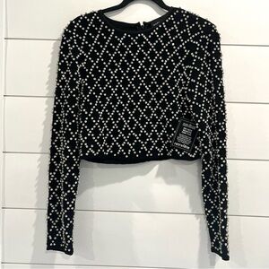 Your next night out needs the Brooks Top. Adorned with light-catching crystals throughout, this cropped top is cut from sheer silk-georgette and shirred throughout. Complete with an invisible zip at back, wear it with your favorite mini or trouser.