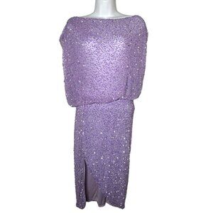 NWT Retrofete Jean Sequin Dress Lavender Purple Beaded Mini Off-Shoulder Medium