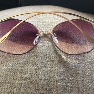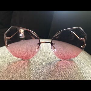 NWT Retro frameless crystal cut edge Polygonal glass anti uv sunglasses.