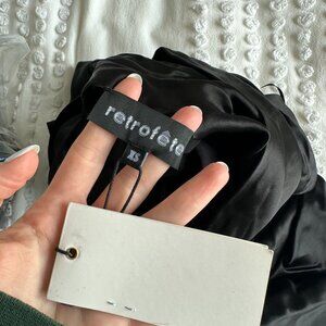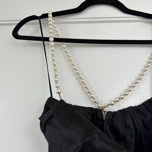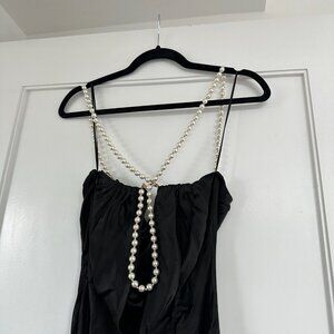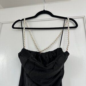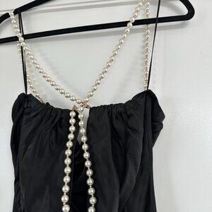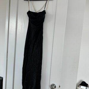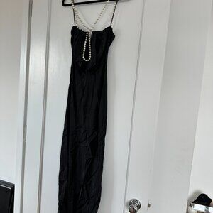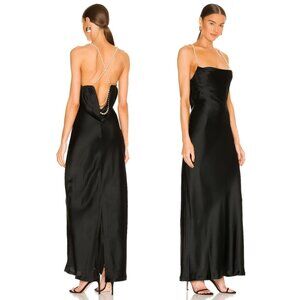 NWT Retrofête Electra Sexy Black Long Dress Pearl Straps Cowl Neckline Low Back