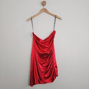 NWT Retrofête Ser.O.Ya Red Satin Ruched Tube Mini Dress Large