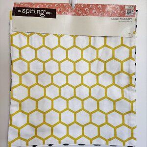 NWT Reversible Blue/White, Yellow/White Hexagonal Design Table Runner 16x72 inch