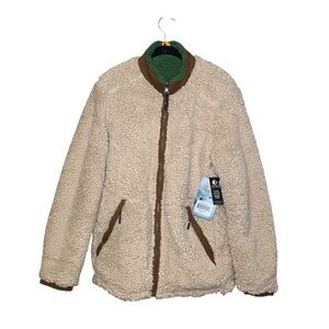 Be Boundless NWT Cozy Reversible Faux Fur Sherpa Jacket Size Small Ecru Spruce