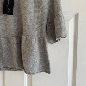 NWT Revive Cashmere Peplum Short Sleeve Sweater Gray Lightweight Size XS Prep