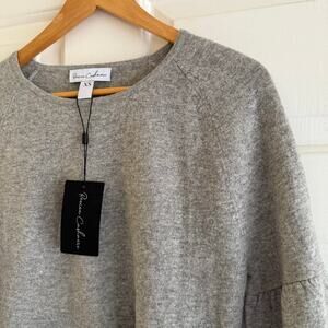 NWT Revive Cashmere Peplum Short Sleeve Sweater Gray Lightweight Size XS Preppy Classic Academia