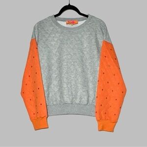 NWT English Rose by Revolve Crewneck Quilted Gray Sweatshirt with Orange Sleeves & Breathable Grommets, and Ribbed Cuffs & Hem, Size Medium.