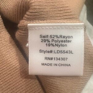 Stylish off-shoulder knit dress in tan. Perfect for any occasion.
