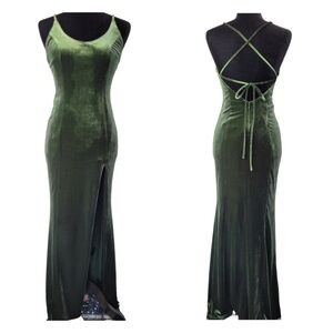 New with tag Revolve Majorelle Olive Sheath Corset Velvet Maxi Dress size XS