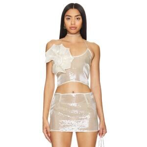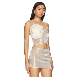 NWT Revolve Miscreants Harper Ivory Sequin Shell Embellished Sheer Cami Size 10