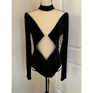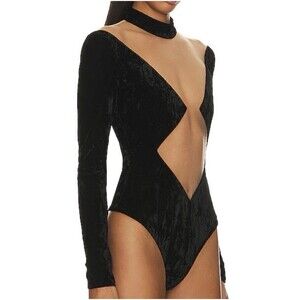 NWT Revolve NBD Firoja Black Velvet Cut Out Bodysuit Sz Large