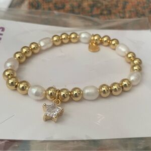 NWT Revolve Petit Moments Gold Pearl Star Charm Bracelet
