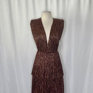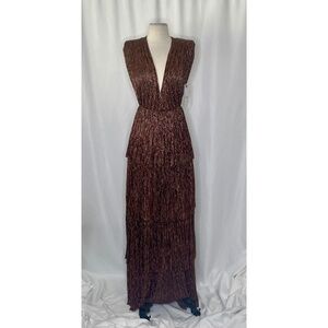 NWT!! Revolve SABINA MUSAYEV Skylar Full Length Gown Bronze Party Glam X-Small
