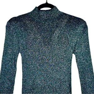 NWT Revolve Steve Madden Nadina Metallic Stretchy Long Sleeve Mini Sweater Dress, Pull-On Style, with High Mock Neck and Chest V Detailing, Black & Silver, Size Small.