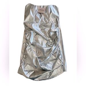 NWT Revolve Superdown Nellie Strapless Mini Dress in Metallic Silver