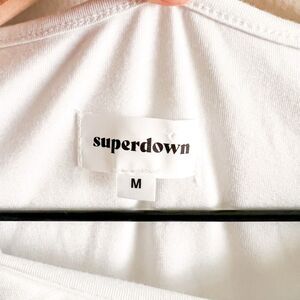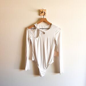 Revolve Superdown Yesenia Twist Bodysuit in White. Features Gusset snap button closure with thong back, Twisted cut-out details at shoulder, & Soft jersey fabric. Brand new with tags. No holes, rips, or stains. Ours is a smoke free home.