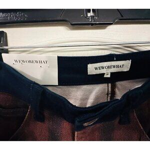 Elevate your wardrobe with these modern plaid stretch twill jeans from WeWoreWhat. The high waist design and red color block pattern make them a stylish addition to any outfit. The jeans are made with a medium fabric wash and are perfect for women who wear size 26.