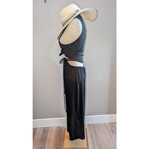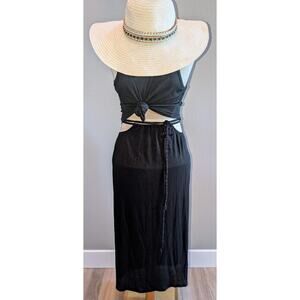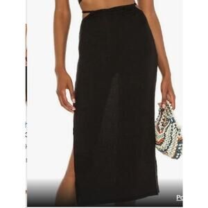 NWT Revolve Weworewhat Swim Black Cutout Midi Skirt Strappy Waist Side Slit Sz L