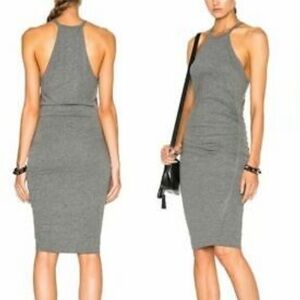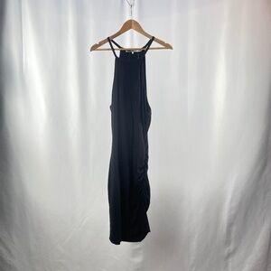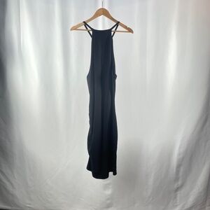 NWT Revolve x Pam & Gela Ruched Fitted High Neck Midi Dress in Black Size Large