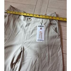 NWT Rewash ladies seamed wide leg cargo pants. Linen blend. Khaki. Elastic waist, large pockets, comfortable fit. Sz L