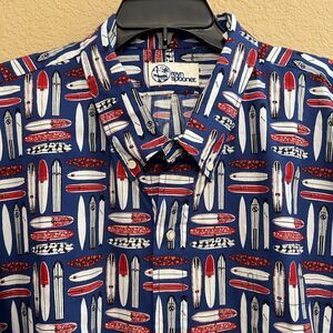 NWT Reyn Spooner Hawaiian Shirt Mens 3XL Blue Surfing Longboard Aloha Camp