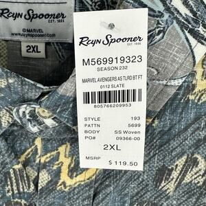NWT Reyn Spooner Marvel Avengers Assemble Camp Button Up S/S Shirt Mens 2XL Dad Casual Blokecore Grandpacore Preppy Streetwear Comics Superhero
