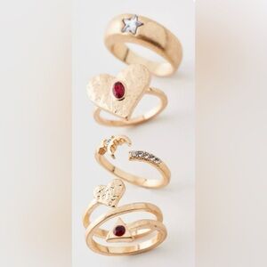 - Gold-tone rings with rhinestone detailing