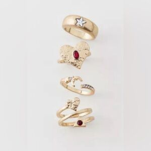 Set of four coordinating rings in a gold finish complete with rhinestone detailing.