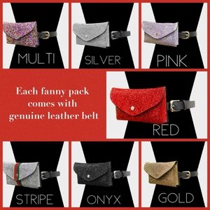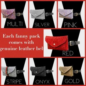 Glam overload! Beautiful Fanny packs that can also be carried as a clutch. Each pack comes with its own genuine leather belt inside!