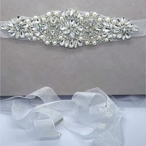 NWT Rhinestone Pearl Beaded Bride Bridal Belt Wedding Dress Sash White Long Plus