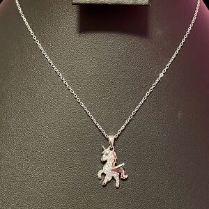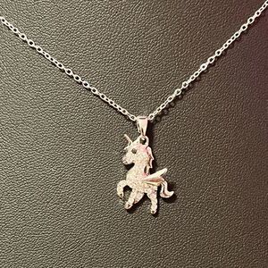 NWT Rhinestone Unicorn Pendant Silver Tone Stainless Steel Necklace
