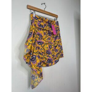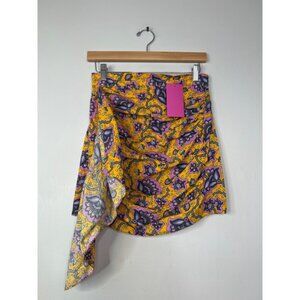 NWT Rhode Hannah Ruched Poplin Gold & Purple Floral Mini Skirt Gold Lotus