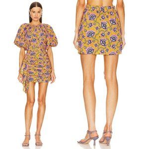 Rhode Hannah Ruched Poplin Floral Mini Skirt Women's Gold Lotus. New with tag!