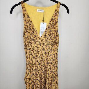 NWT Rhode Irvetta V Neck Side Slit Ruffle Dress Floral Trellis Wheat Size Small