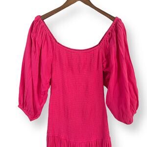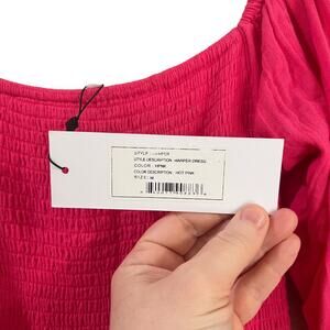 Rhode Resort Harper Printed Smocked Midi Dress Size M Hot Pink Puff Sleeves.