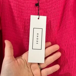 NWT Rhode Resort Harper Printed Smocked Midi Dress Size M Hot Pink Puff Sleeves
