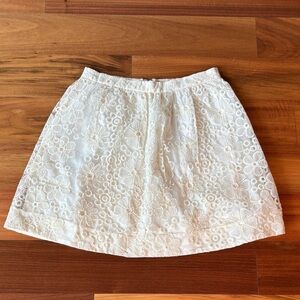 Pretty ivory lace full skirt. Lined with silver exposed zipper in back.