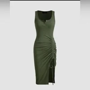 NWT Ribbed Button Drawstring Midi Dress