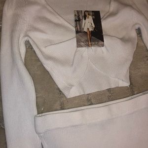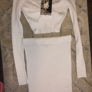 High waist mini skirt with Cropped Top. Exactly as pictured. In White. Looks great with OTK boots.