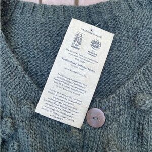 Gorgeous, 100% wool cardigan with long ribbed sleeves, and fun unique pom-pom details throughout.