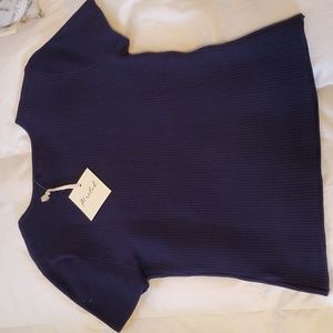 Brand new with tags. Women's size medium slightly cropped ribbed navy blue top. Thick stretchy fabric.