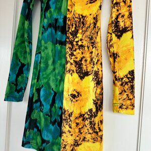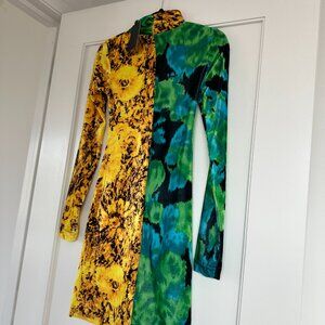 NWT Richard Quinn Mini Dress Sz 2 Twisted Neckline 2-tone Floral Abstract Print