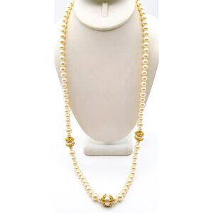 NWT Richelieu Long Pearl Strand Necklace with Gold Tone Caps, Chic Vintage Faux Pearls
