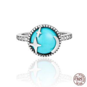 NWT Ring S925 Sterling Silver Stamped Star Moon CZ Turquoise Cabochon Sz. 7