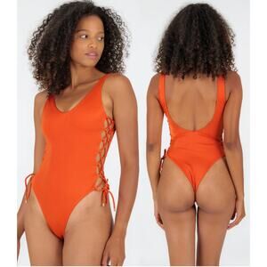 NWT Rio De Sol Paprica Zoe Sleeveless High Leg One Piece Orange Women's Size S