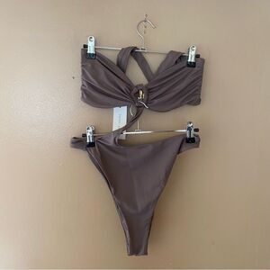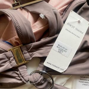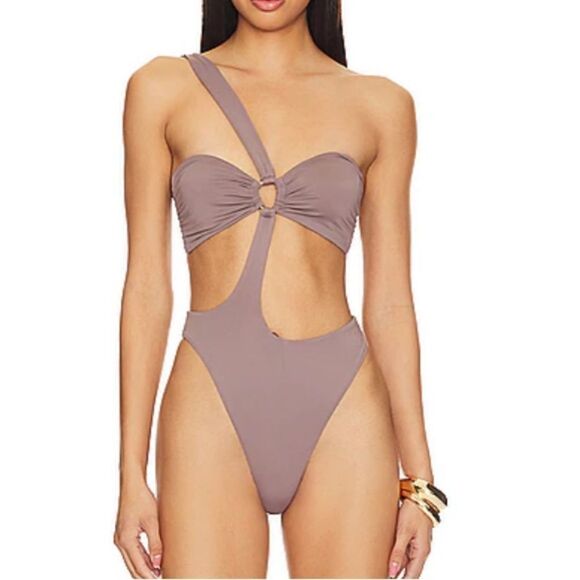NWT Riot Swim Belen One Piece Mystic taupe gray monokini swimsuit Revolve L