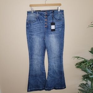 NWT Risen | Button Fly Vintage Flare Leg High Rise Jeans.