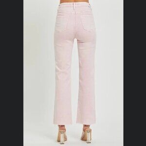 NWT Risen High Rise Raw Hem Slit Straight Jeans in Mauve size 15/32
