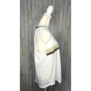 The Rivalry Threads 91 women's tank in size S features a white, striped pattern and a scoop neckline. Made from comfortable, breathable fabric, this sleeveless tank is ideal for casual summer occasions. It includes a team logo and offers a regular fit. New with tags (NWT). Keywords: Rivalry Threads 91, women's tank, size S, white, striped, scoop neck, sleeveless, breathable fabric, team logo, casual wear, summer top, comfortable, regular fit.