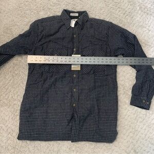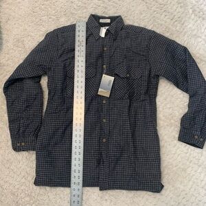 Introducing the NWT River Trader Quilted Filler Button Down Shirt, perfect for any stylish man's wardrobe. This shirt boasts a button-down collar style and accents with quilted detailing. It is made by the renowned brand River Trader and is a type of button-up shirt.