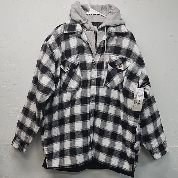 NWT River Trail Men's Black and White Plaid Hooded Jacket. Size 2XL. MSRP $88.